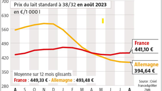 Depuis le début du mois de septembre, le prix du lait Spot est au moins à 500 €/1 000 l dans le Grand Ouest et 510 €/1 000 l dans le Nord et l’Est.