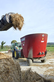 Il faut aussi s’organiser pour le faire, surtout avec un grand troupeau. Il est difficile d’assurer un bon mélange avec un jet d’eau, avec comme seul repère le peson de la mélangeuse. Ajoutée à la fin du mélange, l’eau imbibe moins efficacement les particules fines. Idéalement, des granulés doivent tremper au moins une heure. Dans la pratique, à l’image du Compact Feeding, il est possible de les préparer la veille, puis d’ajouter l’ensilage d’herbe avec un temps de mélange suffisant pour une coupe en brins courts (10 mm), les minéraux et le maïs à la fin (coupé à 10-15 mm). L’objectif : une ration dosant au moins 37 à 39 % de MS.