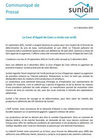 Exit les 111,9 M€ compensatoires réclamés le 19 septembre 2023 par Sunlait à Savencia devant la Cour d’appel de Caen (Calvados). L’association d’OP avait entamé en septembre 2021 une procédure judiciaire contre le groupe pour inapplication contractuelle de la formule de prix. Elle avait gagné en première instance au Tribunal judiciaire de Coutances (Manche) mais vient de perdre le second round. La Cour de Caen a rendu son délibéré aujourd’hui et donne raison à l’industriel, qui avait fait appel.