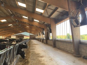 La ventilation naturelle est une excellente solution lorsque la température n’excède pas 20°C. Au-delà, elle atteint ses limites et les vaches commencent à entrer en stress thermique agissant directement sur l’état de santé de l’animal et son niveau de production.