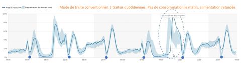 Figure 1: Le schéma alimentaire du troupeau indique à quel moment et quel pourcentage du troupeau mange.