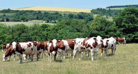 Les montbéliardes au pâturage. Alors que le pâturage en AOP époisses est obligatoire au moins deux mois au printemps, en AOP langres, les vaches doivent sortir pendant six mois.