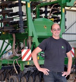 Le semoir. Depuis 2002, les cultures sont implantées en semis direct. Ici, Jean-Pierre Sauvageot.