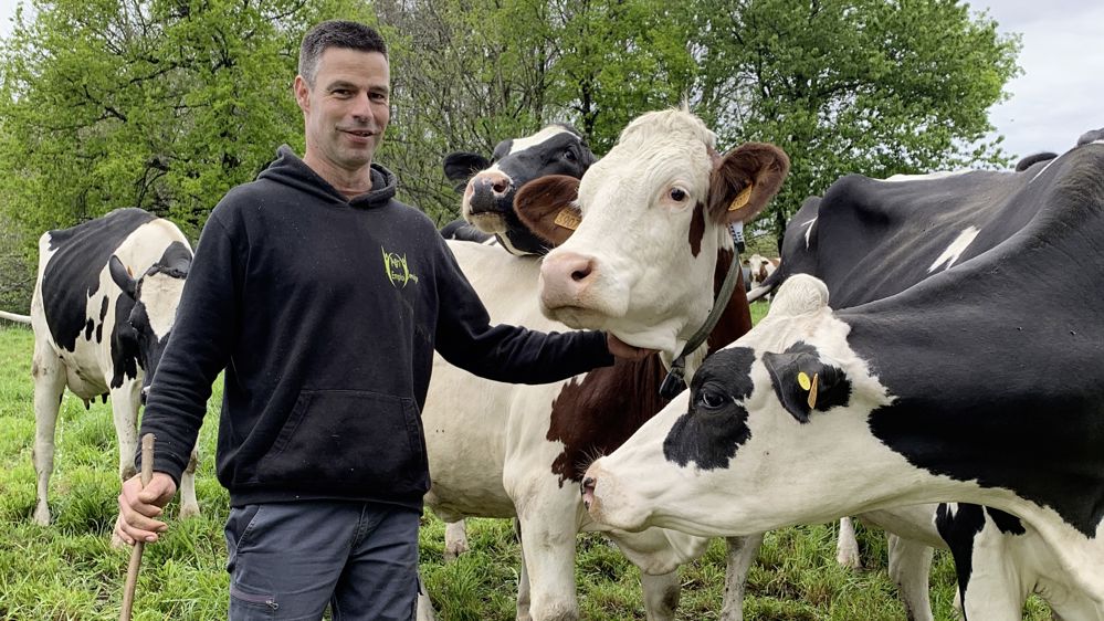 Vincent Bordas est la quatrième génération de la ferme. Son choix a été de garder et de développer la partie laitière. « J’aime les vaches ! » s’exclame-t-il, presque en s’excusant. Un choix peu banal pour cette exploitation sur les coteaux ensoleillés d’Allassac, dans cette zone, proche de Brive-la-Gaillarde, où les pommiers occupent le paysage.