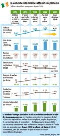 Malgré le durcissement de la dérogation en 2022, les Irlandais ont réussi l’exploit de maintenir leur collecte depuis 2020. Elle est en moyenne de 8,8 milliards de kilos, avec des variations selon les conditions météorologiques. Les 9,02 milliards de kilos en 2022 sont le maximum atteint en quinze ans d’ambition laitière et sans doute l’expression du potentiel du pays. Même si les coûts de production ont augmenté de 40 % à 45 % depuis le début de la guerre en Ukraine, les prix moyens du lait, entre 450 et 575 €/1 000 l, incitent les producteurs à poursuivre l’activité et, pour certains d’entre eux, à différer leur départ à la retraite. Le nombre d’exploitations spécialisées reste stable, au-dessus des 15 000 sur un total de 17 000, mais avec une taille des troupeaux qui progresse.