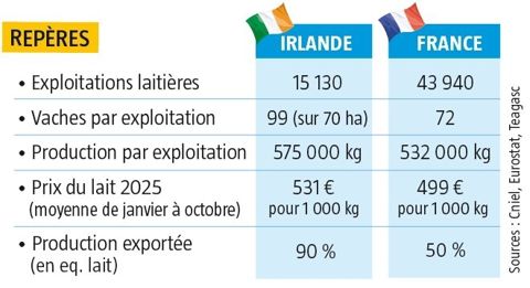 Selon le centre de recherche et de conseils Teagasc, 72 % ont aujourd’hui plus de 100 vaches, les plus forts agrandissements ayant eu lieu ailleurs que dans le sud-ouest, qui est la principale région laitière irlandaise. « La moyenne d’âge est de 57 ans. C’est un problème, souligne Laurence Shalloo, le monsieur économie laitière de Teagasc. Le renouvellement des générations est vital pour le secteur. » Il espère que les revenus élevés dégagés encourageront les enfants d’éleveurs à reprendre la ferme familiale, et les producteurs de viande et les céréaliers à se convertir au lait. « Le résultat 2025 avant rémunération du travail et du capital foncier est estimé à 140 000 €, contre 22 000 € à 41 000 € pour les autres productions [NDLR : souvent double actifs]. » La filière laitière a à peine enregistré une centaine de conversions en dix ans. « Il y en aura plus à l’avenir », veut-il croire.