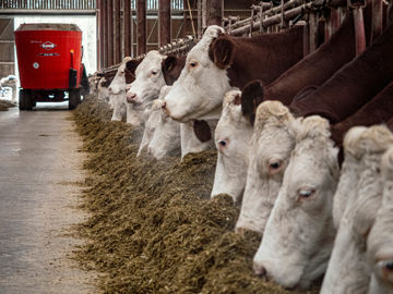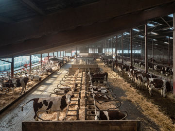 Tout le troupeau, vaches et génisses, sous le même toit
