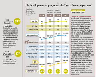 Une qualité du lait irréprochable, une bonne valorisation des produits, une maîtrise des charges, des investissements raisonnés et évolutifs, ainsi que le plaisir de travailler ensemble expliquent les bons résultats du Gaec Élevage Hugueny.