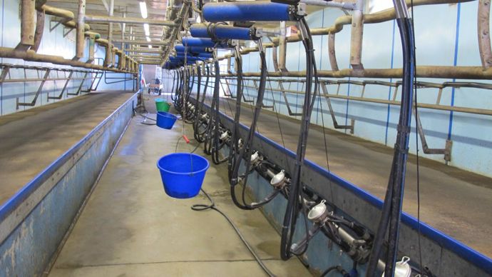 Les mamelles sont d’abord lavées avec des lavettes individuelles, par lot de six ou sept. Elles sont ensuite branchées.