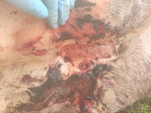 Les hématomes, comme d’autres affections (abcès, mammite, infection cutanée), peuvent conduire à des plaies de léchage (voir photo ci-contre). Il s’agit d’une automutilation de la vache qui se lèche frénétiquement. Ce comportement est difficile à juguler. Il est possible de bricoler des sortes de colliers qui empêchent l’animal de tourner le cou et, en même temps, il faut gérer la douleur de la vache avec des anti-inflammatoires et des soins locaux (miel, produits gras, jet d’eau froide).