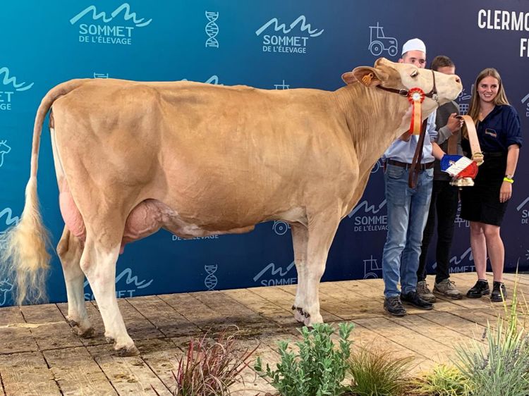 Gourmande n’était certes pas la plus mixte. Et certains se sont étonnés que le juge l’ait choisie comme grande championne, à l’issue d’un National alignant 91 vaches présentant en grande majorité un dessus large et de vraies aptitudes bouchères. Pour autant, âgée de 10 ans et en septième lactation, elle montre une mamelle « d’une fraîcheur remarquable », a établi le juge. Appréciez le non-volume et la distance plancher-jarret. Elle a aussi pour elle un dessus solide et des membres très sains.