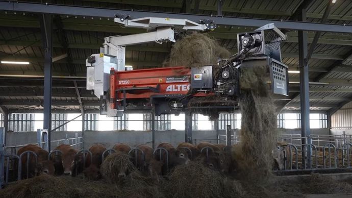 Pour parachever son nouveau bâtiment d’élevage, Sébastien Manhes a installé une pailleuse distributrice de fourrage sur rail dans sa stabulation. Une manière pour l’éleveur de simplifier le travail d’astreinte hivernal a...