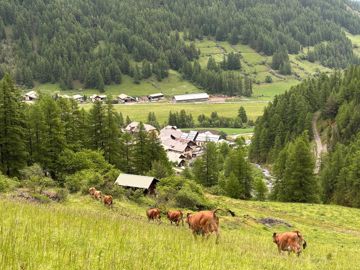 L’alpage fournit de l’herbe fraîche au moins jusqu’à fin juillet en année sèche, jusqu’à fin août sinon. Les vaches redescendant ensuite dans la vallée où elles pâturent sous les mélèzes. « Ces arbres ont des aiguilles caduques qui nourrissent le sol. En été, ils laissent passer la lumière mais garde la fraîcheur, ce qui permet une bonne pousse en dessous », précise François. Ces forêts sont gérées par l’ONF qui décide quand effectuer des coupes. Les vaches ne peuvent plus y aller dans les deux à trois ans qui suivent car les restes de branches sont très coupants et blessent les mamelles. Les éleveurs n’ont donc pas la maîtrise de la disponibilité de ces espaces.